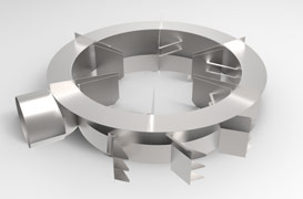 GDIS-300系列双切向环流气体分布器双切向环流进料分布器具有气体分布均匀、压降小、雾沫夹带低等较好的综合性能,在大塔中尤其是大型减压塔中应用较为广泛,可以更好地发挥填料的效率,大大降低进料闪蒸段高度 -
